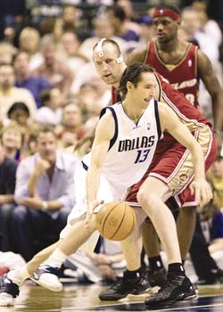 中新網(wǎng)4月1日電 諾維茨基和納什昨天雙雙發(fā)威,率領(lǐng)達拉斯小牛隊以126:109頂翻了克里夫蘭騎士隊,也為本隊拿到了一張季后賽入場券。沒有了埃弗森的費城76人隊繼續(xù)“當家作主”,以95:71結(jié)束了金州勇士隊的7連勝狂奔。