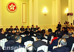 香港政務(wù)司司長(zhǎng)曾蔭權(quán)四月八日出席在香港禮賓府舉行的政制發(fā)展座談會(huì)。中新社記者:錢興強(qiáng)