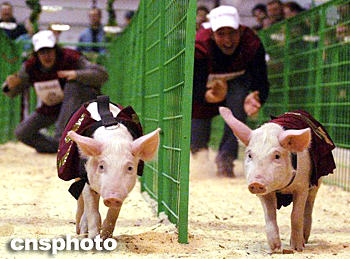 “小豬快跑奧運會”最近在俄羅斯首都莫斯科開鑼,憨態可掬的小豬們在比賽中個個奮勇爭先,一顯“英雄本色”,令到場觀眾忍俊不禁。Ic/cnsphoto 攝