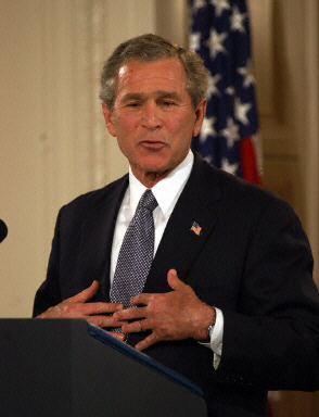 美國總統布什在白宮東廳舉行今年以來的首場新聞發布會