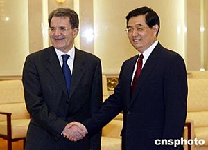 普羅迪表示,目前歐盟同中國的關(guān)系處于歷史最好時(shí)期。雙方不僅在經(jīng)濟(jì)上,而且在政治、文化以及科技等領(lǐng)域都進(jìn)行了良好和富有成果的合作。歐盟重視中國在國際上的重要地位和作用,希望進(jìn)一步密切同中國的戰(zhàn)略關(guān)系,全面加強(qiáng)同中國在各領(lǐng)域的合作。
