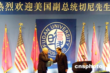 中新網4月15日電 來自上海的最新消息說,美國副總統切尼15日上午在復旦大學開始演講。