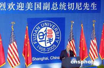 中新網(wǎng)4月15日電 正在上海訪問的美國副總統(tǒng)切尼今天上午在復(fù)旦大學(xué)發(fā)表演講時(shí)說,如今,中國已經(jīng)邁步走向一個(gè)偉大的征途,美國歡迎中國取得的長足進(jìn)步。