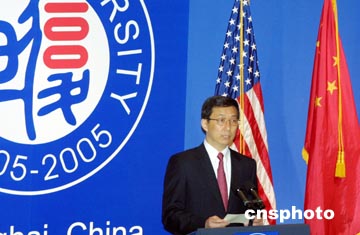 演講會(huì)由復(fù)旦大學(xué)校長王生洪主持,上海市長韓正致辭歡迎切尼副總統(tǒng)和夫人訪滬。