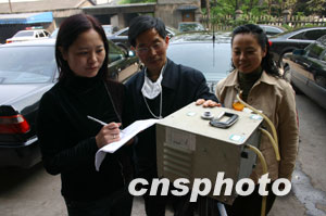 圖:重慶環(huán)保官員現(xiàn)場監(jiān)測空氣質(zhì)量