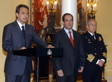 4月18日,西班牙新任首相薩帕特羅(左一)在馬德里宣布,他已下令駐伊拉克的1300名西班牙軍人盡早撤離回國。