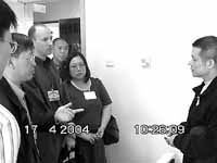 4月17日上午10點,美國聯邦調查局駐華聯絡官威廉、美國移民局駐華事務官瞿建玲來到東城區看守所,參觀、了解關押情況。看到余振東和其他犯罪嫌疑人一樣坐在地上,威廉叫他站起來走一走,并和他有這樣一段對話: