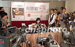 己淡出娛樂圈一段日子的周慧敏4月21日在香港舉行其首部作品《我的貓兒子周慧豹》新書發布會,吸引眾多傳媒到場采訪。作者:鄧慶樂