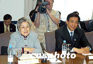 中國國務院副總理吳儀(左)和商務部部長薄熙來(右)四月二十一日出席在美國華盛頓舉行的第十五屆中美商貿聯委會。作者:余東暉