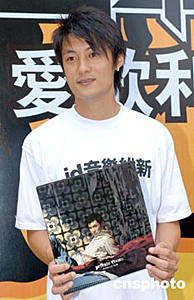 歌星余文樂4月28日在香港商業電臺出席《id音樂維新》記者會,手持其個人音樂專輯,呼吁大家支持正版音樂。作者:鄧慶樂
