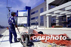 2004年雅典奧運會的各項設(shè)施工程加緊進行,新聞中心在日前總算落成,但內(nèi)外裝修工程依然艱巨。作者:田地