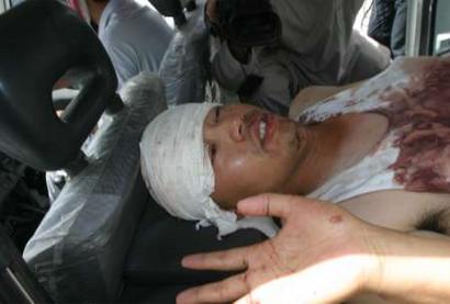 受傷的中國工人被送往醫院(REUTERS/Athar Hussain)