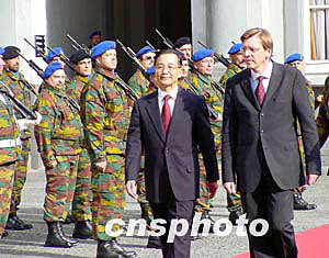 比利時首相伏思達(dá)五月五日下午舉行隆重儀式,歡迎中國國務(wù)院總理溫家寶訪問比利時。作者:蔚中