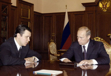 普京(右)在克里姆林宮與車臣代總統阿布拉莫夫舉行會談