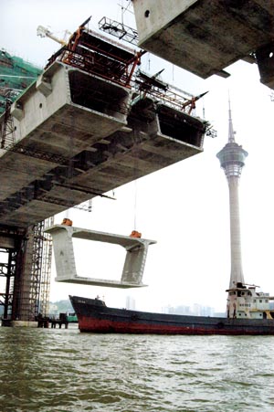 澳門第三大橋工程進展順利 橋面已接近合龍(圖)