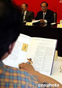 五月十二日,全國政協京昆室主辦的“保護扶持昆曲藝術”新聞發布會在北京舉辦,會上宣布《中國昆曲精選劇目曲譜大成》將于年底完成出版。昆曲是中國現存的最古老的戲曲藝術,被譽為“百戲之師”。二○○一年五月十八日,昆曲被聯合國科教文組織評審通過列為首批“人類口頭和非物質遺產代表作”名單。全國政協副主席、京昆室主任王選(右一)在新聞發布會上講話。中新社記者:張勤