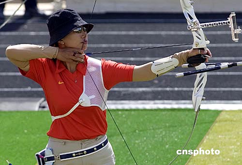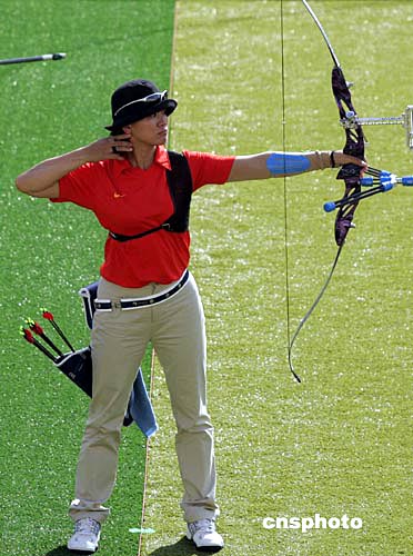 中國女子射箭隊在團體賽中連闖兩關 進入四強 (2004-08-20)