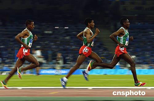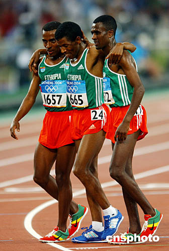 圖為在當地時間8月20日舉行的男子1萬米比賽中,埃塞俄比亞選手所向披靡,一路領先。最后貝克勒輕松奪冠,并打破該項目的奧運會記錄。