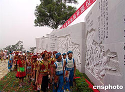 八月二十一日,鄧小平發(fā)動領導百色起義的地方廣西百色市舉行活動紀念鄧小平百年誕辰,鄧小平手跡碑林園當日落成揭幕。圖為少數民族同胞觀看碑林,紀念鄧小平百年誕辰。