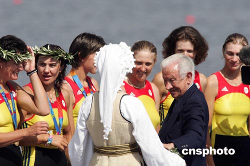 薩馬蘭奇出席雅典奧運賽艇頒獎儀式