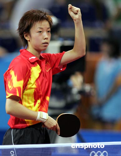 張怡寧今日輕松地以四比零戰勝朝鮮選手金香美登上奧運會女單“后座”,幸運地為中國取得其夏季奧運會歷史上第一百枚金牌,可是她卻沒有戴著這枚金牌走入新聞發布廳。