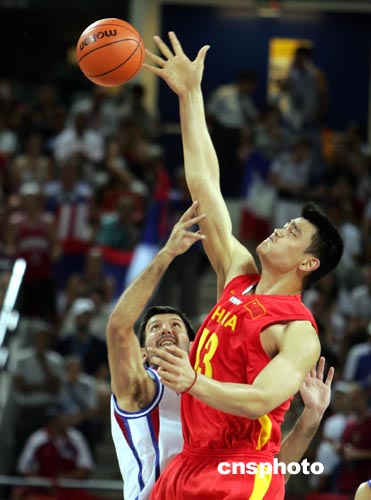 當地時間八月二十三日下午,中國男籃在雅典奧運會小組賽最后一場比賽中以67:66一分險勝塞黑隊,闖入前八名,姚明打滿全場,依然是球隊獲勝的頂梁柱。中新社記者:任晨鳴