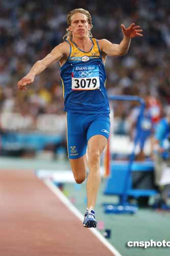 在當地時間22日進行的男子三級跳遠決賽中,瑞典選手奧爾森獲得金牌。