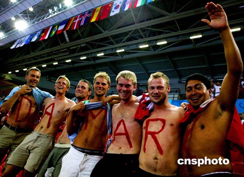 當地時間8月26日晚,丹麥女子手球隊以32比28戰勝中國隊進入四強,丹麥球迷以獨特的方式慶祝這一勝利。中新社記者:王瑤
