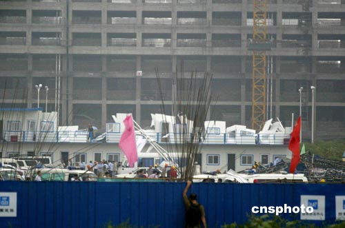 圖文:北京奧運(yùn)工地3幢臨時(shí)設(shè)施被旋風(fēng)摧毀致43傷