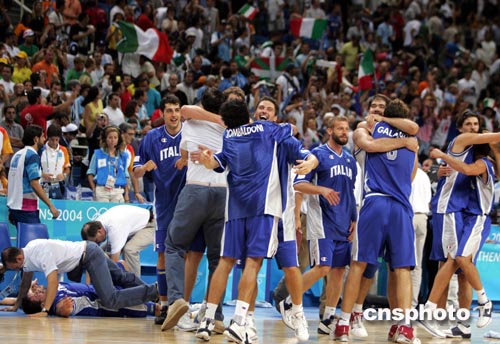 當(dāng)?shù)貢r間8月27日晚,進(jìn)入雅典奧運(yùn)會男籃半決賽的四只球隊(duì)捉對廝殺。不可一世大有非冠軍莫屬的立陶宛眾球星,遇上更加神勇的意大利隊(duì)。雙方在快攻中展開三分球大戰(zhàn),結(jié)果以三分球準(zhǔn)確而著名的立陶宛35投僅15中,意大利卻28投18中。意大利5號BASILE投中11個三分球,砍下全場最高分31分。意大利終以100比91擊敗立陶宛晉級決賽,而決賽的對手是淘汰美國“夢六隊(duì)”的阿根廷隊(duì)。中新社記者:任晨鳴