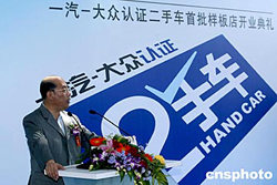 8月28日,一汽——大眾汽車有限公司在北京舉行“一汽——大眾認證二手車”首批樣板店開業典禮,宣布正式開展二手車業務。圖為一汽——大眾銷售有限責任公司總經理在開幕儀式上致辭。中新社記者:盛佳鵬