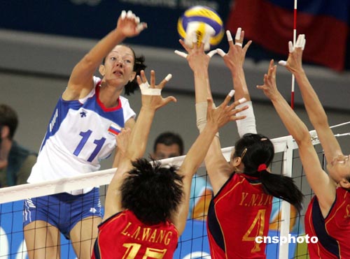 當地時間八月二十八晚,中國女排在雅典奧運會女排決賽中先失兩局的情況下,連扳三局,最終以三比二戰勝俄羅斯隊而獲得冠軍。中新社記者:毛建軍