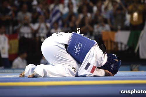 圖為女子跆拳道67公斤以上級亞軍法國選手巴弗雷爾惋惜不已