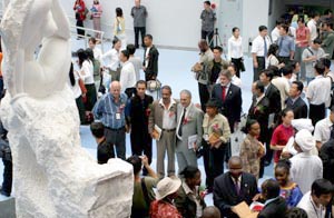 圖為十余個國家的駐華大使、使館官員以及市民參觀雕塑作品