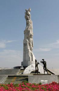 第七屆中國長春國際雕塑作品邀請展今日長春揭幕。圖為雕塑展的主題雕塑“和平·友誼·春天”。
