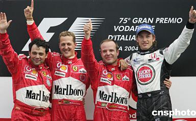 中新網(wǎng)9月13日電 在意大利蒙扎賽道,法拉利再次包攬F1大獎賽意大利站的前兩名,已經(jīng)確保本賽季奪冠的舒馬赫甘居第二,配合巴里切羅登上了冠軍寶座。