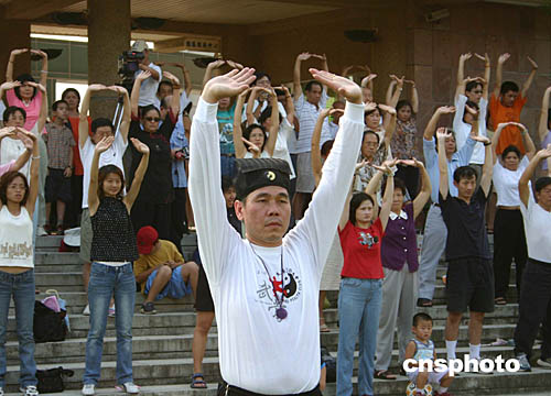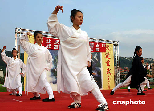 湖北武當山武術文化交流訪問團于9月16日至29日到臺灣巡回表演。18日,訪問團在臺北市天母公園表演。作者:黃少華