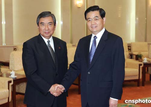 圖:胡錦濤會(huì)見日本國(guó)會(huì)眾議長(zhǎng)河野洋平