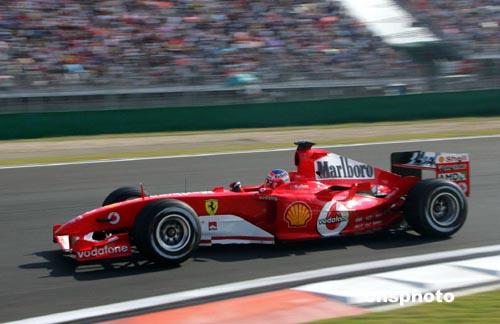 九月二十五日,F1中國大獎賽排位賽在上海國際賽場舉行,法拉利車手巴里切羅以一分三四秒取得桿位。車王舒馬赫在正式排位賽第一個彎道賽車滑出賽道,明天將在最后一位發車。作者:潘索菲