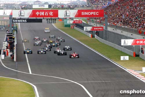 九月二十六日,法拉利車隊的巴里切羅以一小時二十九分十二秒四二零的成績在上海奪得F1歷史上首個中國大獎賽的冠軍。作者:潘索菲