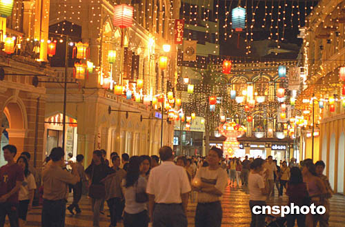 中秋將至,澳門街頭的賀節花燈,為中秋佳節增添歡樂的氣氛。作者:梁永強