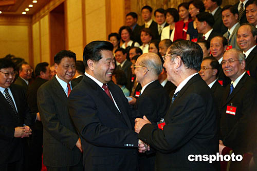 全國政協主席賈慶林、副主席王忠禹等九月二十八日在北京會見全國政協二零零四年國慶觀光團成員。中新社記者:滿會喬