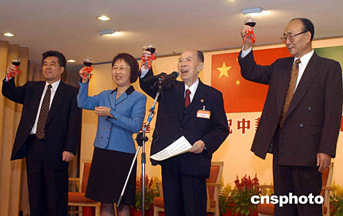 三十日,澳門中華總商會舉行大型酒會慶祝中華人民共和國成立五十五周年,全國政協副主席、澳門中華總商會會長馬萬祺、澳門特別行政區代理行政長官陳麗敏司長、澳門中聯辦副主任王今翔、外交部駐澳門特派員萬永祥等出席了酒會。作者:梁永強