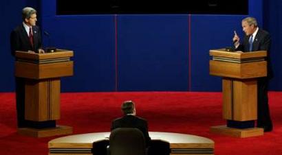 兩位候選人,一位是總統(tǒng),一位是參議員,皆出自富家名校,又都伶牙俐齒,在辯論場(chǎng)上也已身經(jīng)百戰(zhàn),不過(guò),布什作為在任總統(tǒng),又在民意調(diào)查中小占上風(fēng),加上在伊拉克戰(zhàn)爭(zhēng)上、尤其在反恐工作中得到許多選民認(rèn)可,他似乎只要在辯論中保持不敗即可站穩(wěn)腳跟。