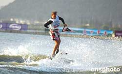 二○○四“明日星城”世界杯滑水賽九月三十日在江蘇常熟尚湖風(fēng)景區(qū)拉開帷幕。來自十六個(gè)國(guó)家和地區(qū)的五十四名選手將三天內(nèi)將角逐男女跳躍、男女回旋、男女花樣共六個(gè)單項(xiàng)的比賽。據(jù)悉,十月二日上午將進(jìn)行各個(gè)單項(xiàng)的決賽。作者:蔣振江