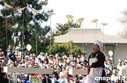美西時間十月二日,北加州華人聯盟在加州聯合城舉辦一年一度的硅谷歡慶中秋佳節及迎中國國慶游園會。圖為雜技名家夏克敏先生在題為“中國心·硅谷情”的游園會表演雜技。作者:陳鋼