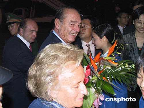8日晚上,法國(guó)總統(tǒng)雅克·希拉克一行300多人乘坐的5架專(zhuān)機(jī)抵達(dá)成都。