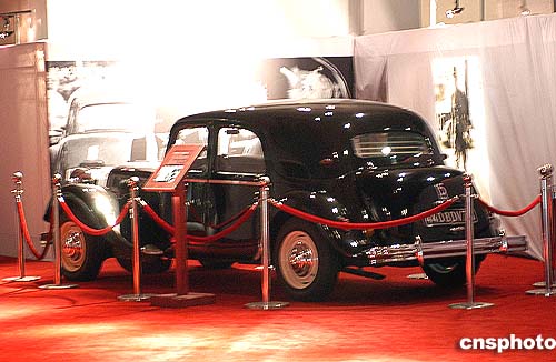 由中國人民外交學會、中國對外文化交流協會和法國戴高樂基金會聯合主辦的《叱吒風云的偉人——戴高樂生平展》,將于10月10日在北京中華世紀壇隆重開幕。這一活動也是法蘭西共和國總統希拉克對中國進行國事訪問之際,正式拉開帷幕的“中法文化年”——法國文化年的活動之一。展覽主要通過圖片、視聽手段復原戴高樂生前的生活和工作場景,展示戴高樂將軍的一生和他為法國所做的貢獻。圖為戴高樂乘坐過的汽車。作者:鄒憲