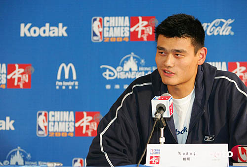 “國王”和“火箭”兩支籃球隊先后于十月十二日凌晨抵達上海,備戰十四日舉行的NBA中國賽。當日中午,姚明出席在上海體育館舉行的新聞發布會。作者:湯彥俊