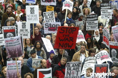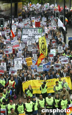 來自英國各地和歐洲大陸的數萬民眾10月17日在倫敦市中心舉行反戰示威游行,呼吁美英軍隊結束對伊拉克的“非法占領”。